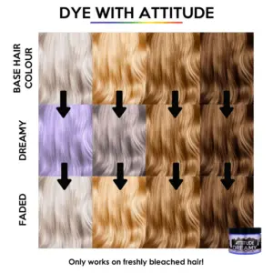 Dreamy pastel purple hair dye will take you to Cloud 9! This cool-toned lilac shade will show up the best on pre-bleached, platinum hair, and generally won’t take to hair any darker than light blonde. We recommend that you leave a pastel shade in for at least 30-60 minutes for a brighter, longer lasting colour. Dreamy will often fade to become a beautiful silver.