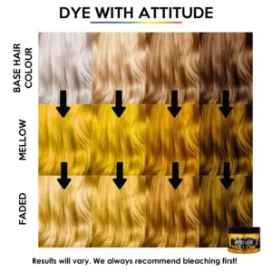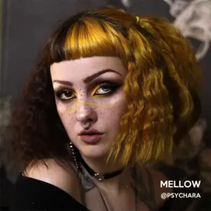 Mellow is for everyone that likes to keep it bright and cheerful! This highly pigmented shade is a rich, honey yellow. Prelightening to level 9 (light blonde) is recommended, but yellow undertones won’t cause a problem with this shade.